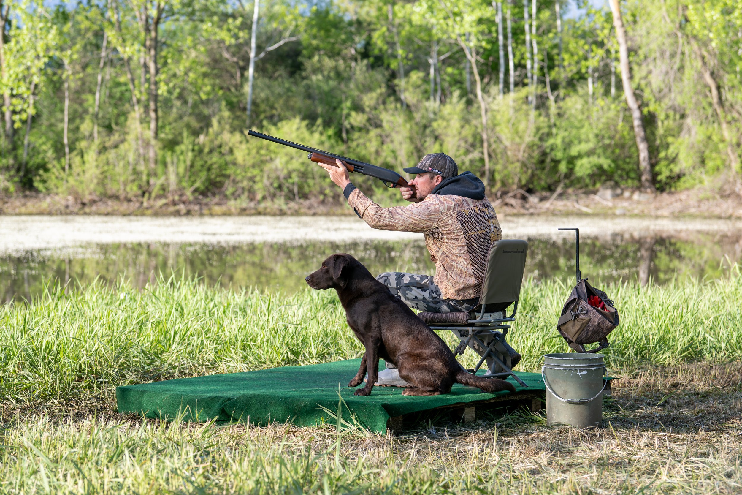 Hold steady, honor other dogs, and work calmly from boat, pit, or marsh stand